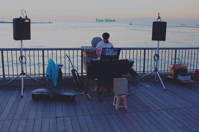从阶梯走下离开打狗领事馆,对面就是西子湾了。第一次近距离完整地观看了日落。一开始太阳真的像个大火球,拥有非常耀眼的光芒,就在成群的人们焦点都集中在它身上时,它以微弱但又让我们感受得到的速度一点点地下降,最后用它的余光昭示着白天的结束。听到有人在街边卖唱,逛了一下午也欣赏完了日落,心满意足地坐在台阶上听歌,唱的大都是台语老歌,听爸爸说台语歌曲的曲调很多受到日本影响,听了一会果然是有日本演歌的风格,海风吹过来大抵是有旅途和乡愁的韵味......