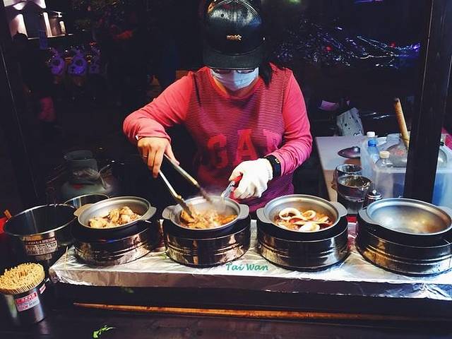 9.台湾的夜市颇多,不同市区基本都有声名远扬的夜市,虽说都是小吃美食的荟萃,但还是会发现各个夜市都有其标志打造的小吃。贯穿于橫橫直直的路上,密密麻麻的小店铺将人们推搡于方寸之间,虽然也会被如织的人潮涌动所降低欣喜感,但这种热闹的溢散也正适合这样的场合啊。人一多就很容易察觉到各色人的样子,小情侣间挽着手的亲昵,经营小吃的夫妻怒吼着争论着什么,少年们兴奋地嘴上嚼着手上拍着……这些真实的面目会在美食的热腾中显露出来
