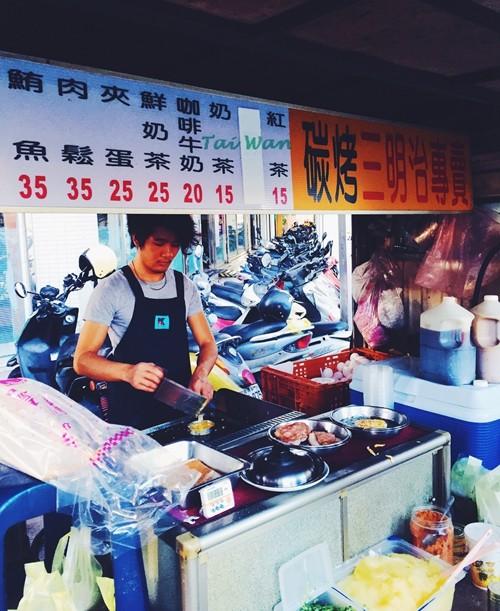 远处的烟气升起,令人兴起吃早点的欲望。排队的本地人和外地人参差其中,有很多的日韩游客,约莫五分钟,有其他商家来送凤梨酥,太阳饼等这样的台湾小点心,小小满足了一下我们空荡的胃,对于没有送到的人,工作人员还非常客气地鞠躬表示道歉,他们似乎都讲一口纯熟的日语,韩语,可能这也是上岗技能之一。