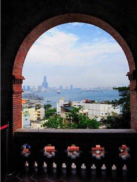 从圆拱形门廊望出去,高雄港的美丽景色跃入眼底