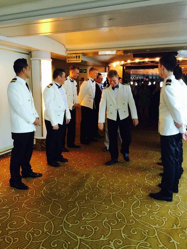晚上就有邮轮专有的船长晚宴啦~喜欢船员的制服