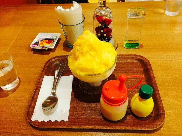 吃完铁板牛肉吃芒果冰消暑 纯芒果做成的冰搭配炼乳 哦一西!