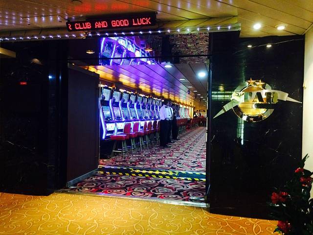 还没到公海就开门咯 在船上挥霍时间[赚钱]的好地方 只可惜里面禁止拍摄