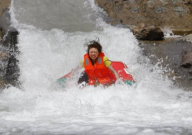 冲刺下来以后,就赶紧闭紧眼睛,嘴巴,鼻子,万一进水了呢,看着小浪,把船都快淹没了,想象一下被水包围的感觉,这有点像在洗浴缸浴;当时,我们在玩这个的时候,真的差点吓尿啊,还好忍住了。不过,下来的那一瞬间,是真心凉快,甚至还有点冷。