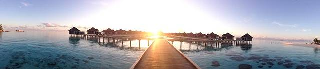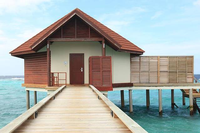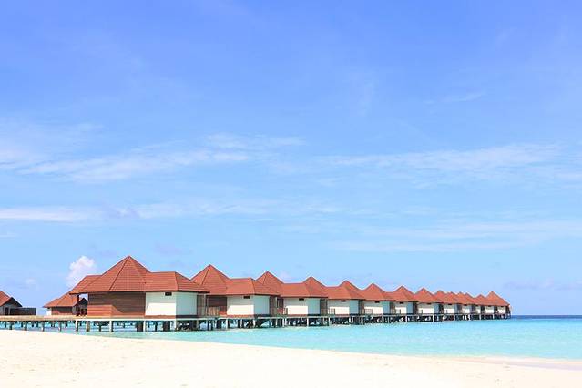 马尔代夫都是一岛一酒店,要提前预定。这次预定了鲁滨逊俱乐部酒店(Robinson Club Maldives),两晚水屋,五晚沙屋,酒店包三餐自助,每天房内提供两大瓶水。
