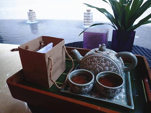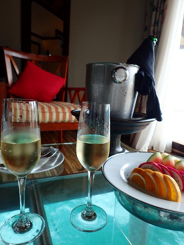 刚上岛,就有酒店人员送上香槟和小挂件,很快有一中文GO来帮助我们办理入住,工作人员会在行李上挂上我们的名字和房间号,会有人直接送到我的房间,我们坐着酒店的电瓶车直接去房间就好啦。