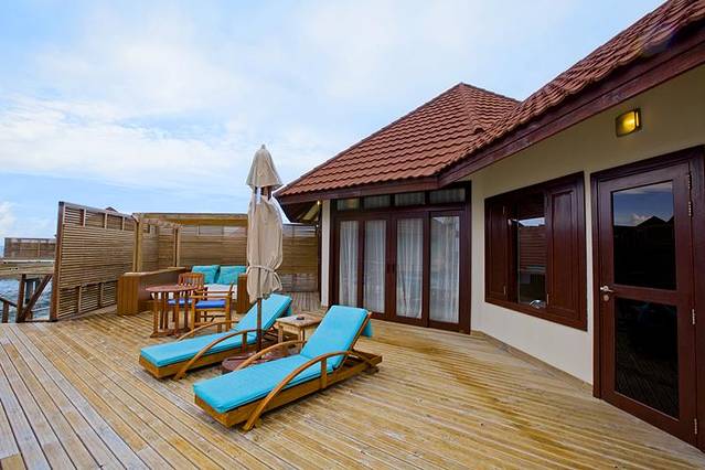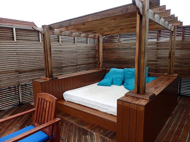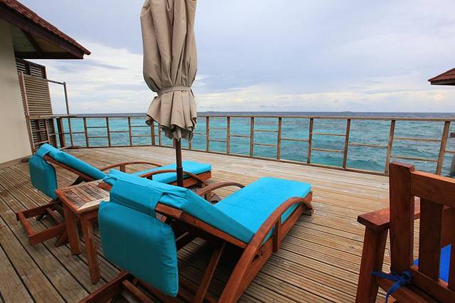 水屋有宽大的私人露台,躺在床上吹着海风或者露台躺椅上望着海,都是不错的体验。