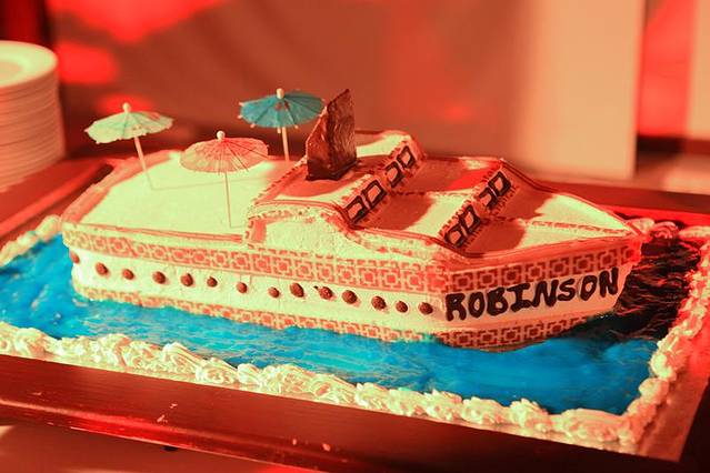 今天有船长派对,酒店要求大家都穿上白色休闲衣。船长派对的冰淇淋蛋糕船,后被切了吃掉了。