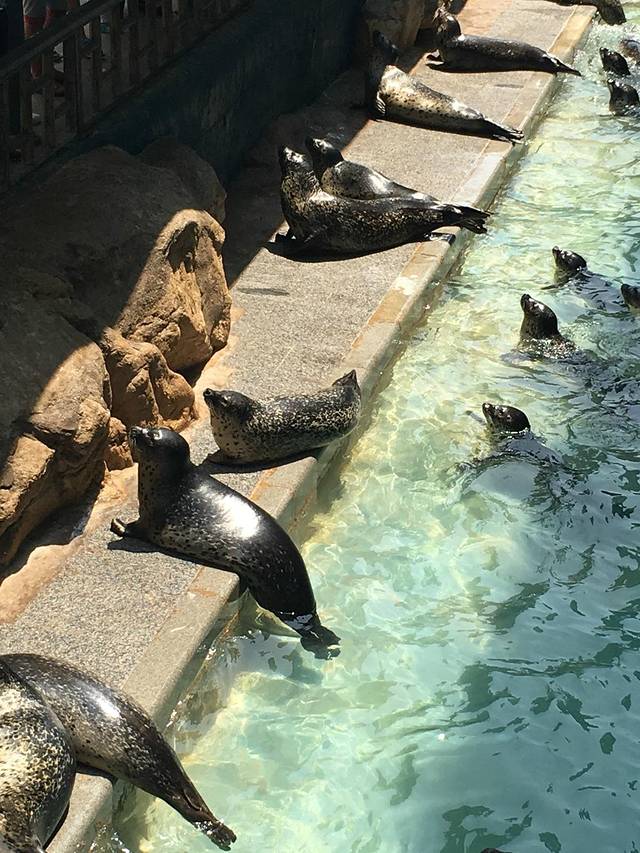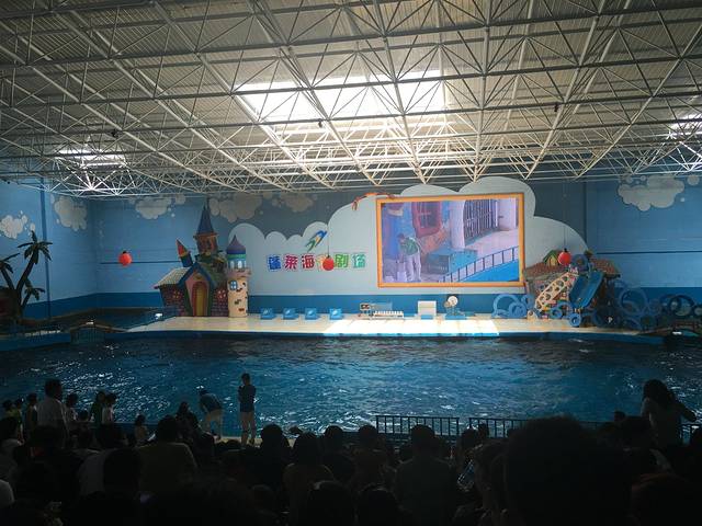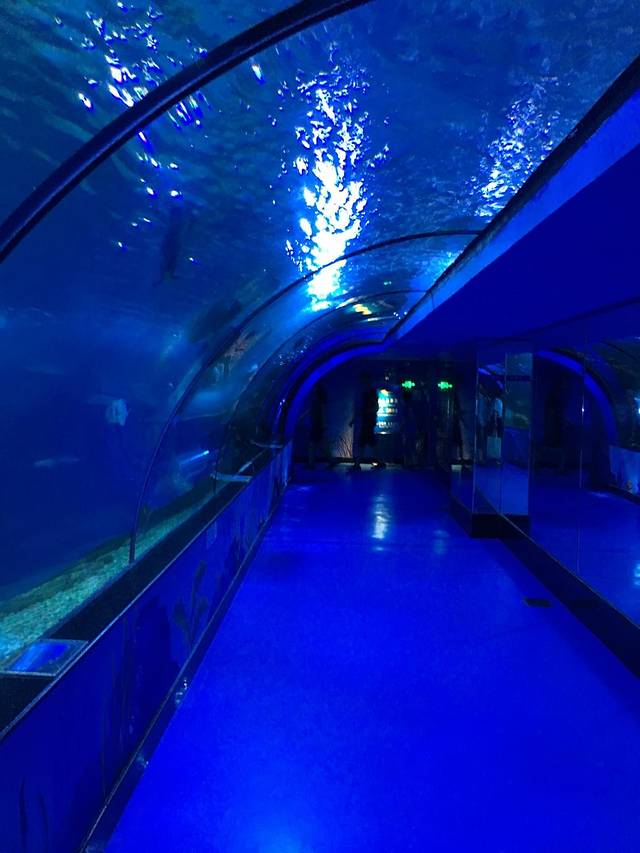 在门口点人数的时候,导游不断推销四楼的一个动感体验的门票,说得天花乱坠的,什么亲自感受,全世界仅此一家,我们没忍受住诱惑买了票,从40块讲价到30块一张,但是体验的时候无比失望,其实比火车站地下通道里的7d动感体验还不如,时间就5分钟,出来之后只有满满的被坑的感觉。但除了这个项目,整个极地海洋世界还是很值得参观的。整个馆有四层楼,比青岛的海洋世界大得多。美人鱼表演座位很少,而且没有专门的场馆,观众就坐在过道上,所以人很多,我们没抢到位置。这个表演就是一群美女穿上美人鱼的尾巴在水底跳舞,还是很厉害的。另一个表演是海豚表演,时间比青岛那个馆短,表演也一般。