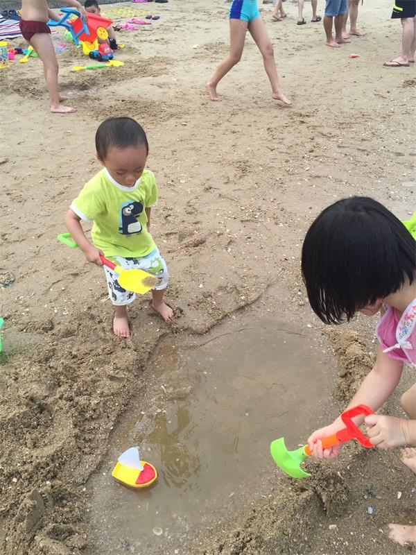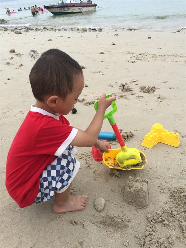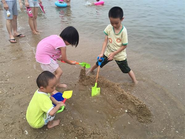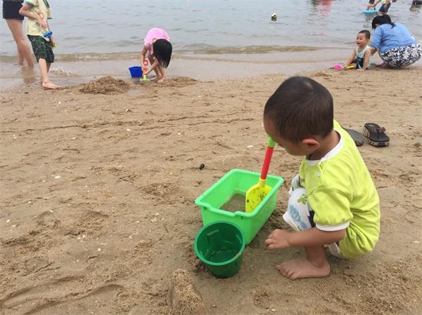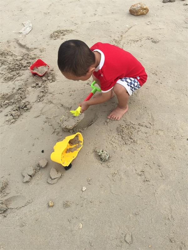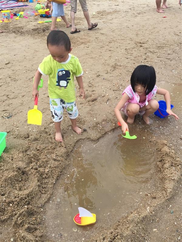 慢时光盒子地理位置很好,出门几百米就是海边。下午17:00,太阳没那么烈,带孩子,拖着各类沙滩工具来到海边,孩子们堆城堡玩得不亦乐乎。