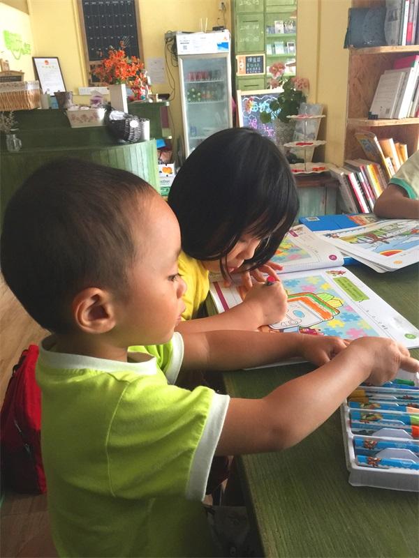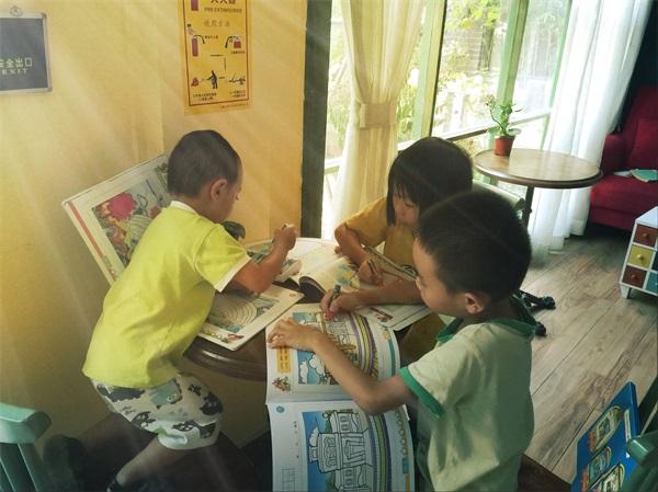 下午天气太晒,孩子们在客栈的大厅画画。初次见面的小朋友相处得还不错。