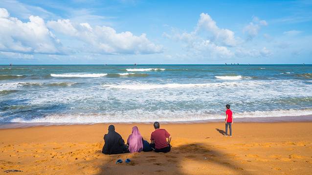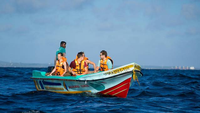 大象看完了满眼都是绿色把,我来插一块蓝色调剂一下。我们到兰卡的东部去,看看亭可马里 的海,来到亭可马里 的主要目标是出海赏鲸,在出海之前,这片海滩就已经让我对它产生了浓厚的兴趣。要知道,我可是在车上晃了大半个下午才来到这。