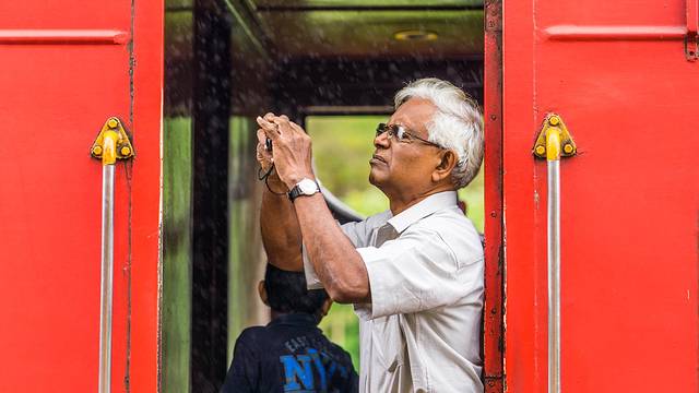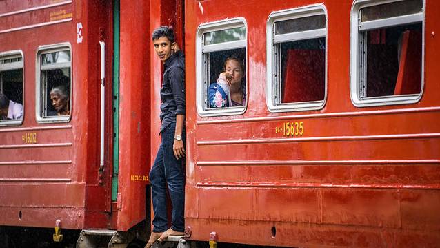 从加勒方向开往科伦坡务必选择左侧位置,这一边才有海景,占到好位置的话别轻易离开,车程不短,后面上车的人越来越多,车厢会变得拥挤,再想找到理想位置基本不大可能,要是不拍车厢内景的话,找个车门坐下是上上之选,凉快啊。