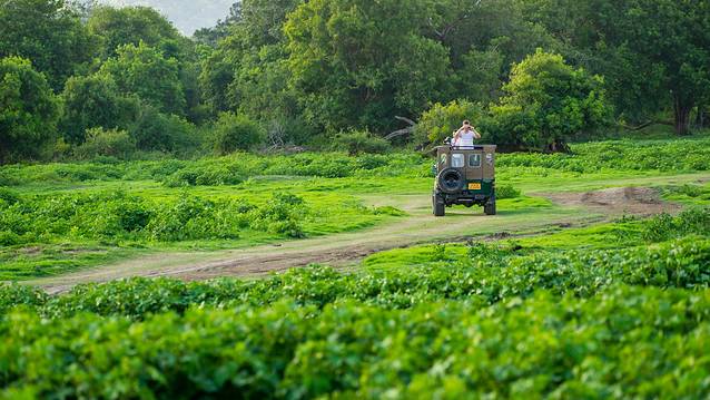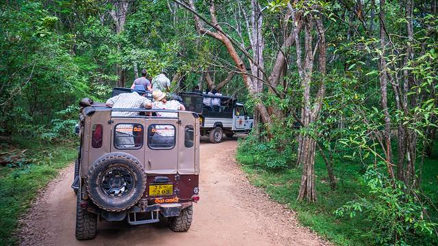 乘坐吉普在密林间穿行,路面颠簸,除了要留心观看周围突然出现的动物之外,还要注意前方,记得低头,有随时被树枝戳中鼻孔的可能。