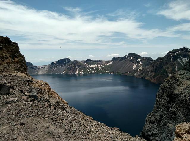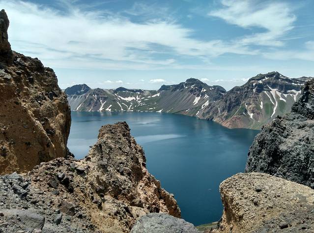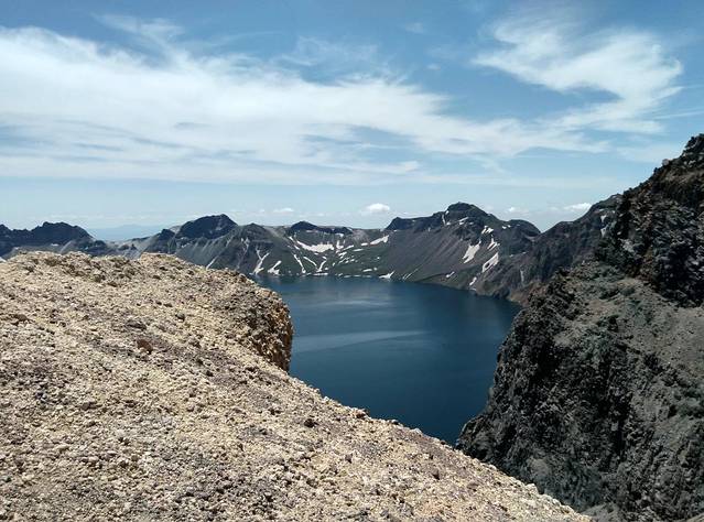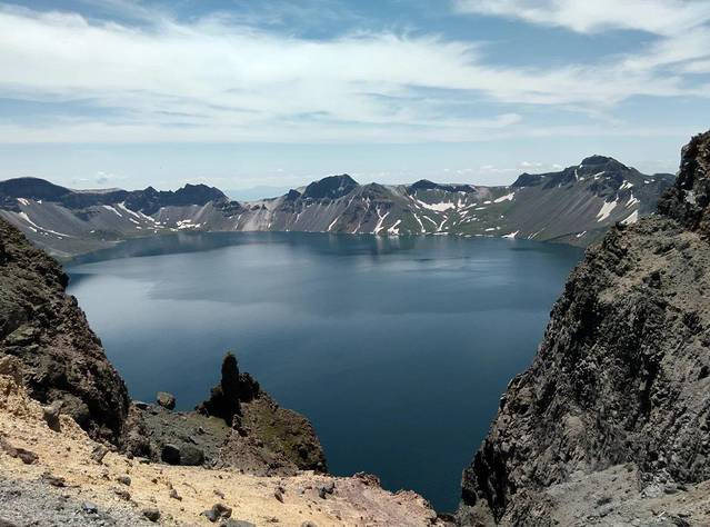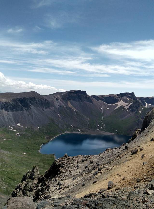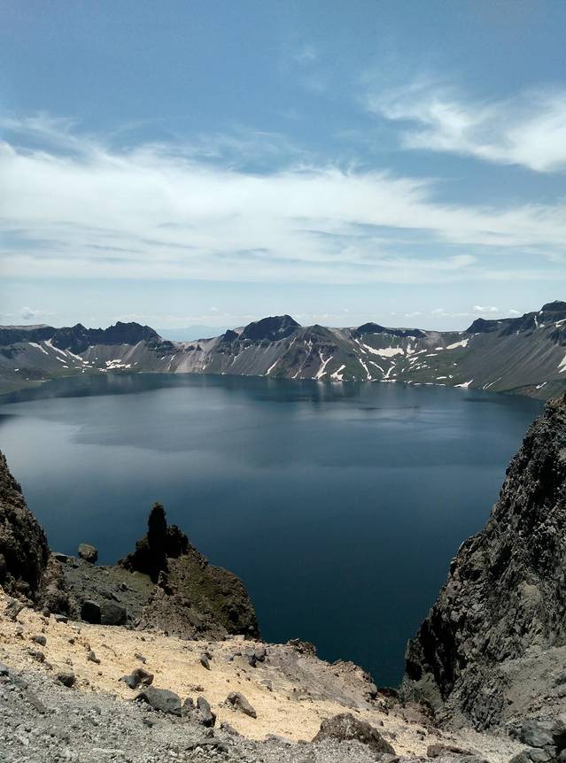 转站车:如果自己出行的话可能需要排一会队坐车上山。因为我们是旅行团出行,所以当地旅行社给我们安排了VIP车,可以直接走VIP通道,不需在山门等待检票和其他流程。我们大概11:10分到达乘坐越野车的中转站。高兴的是我们也不需要排队,直接有越野车载着我们去看天池~大概15分钟的时间途径72道弯终于到达了长白山顶。下车后沿着主峰浏览线路我们到达了天池。当天池呈现在我眼前 时候,感觉自己像个小猴子,东窜西窜的,想把北坡能看到的天池各个角度都拍一遍。因为实在太美了。美得都让人舍不得下山。但是毕竟是跟团游,导游给我们规定了时间。1点左右我们就从山上下来。去下一个景点。