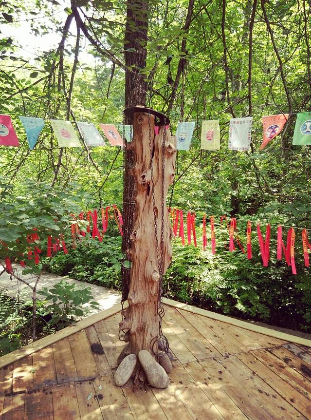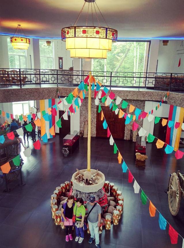 第一站出发去萨满部落。(票价120/人,需自费)6点从安图出发,中途休息吃早饭,大概9点多抵达后开始参观。每个团都有一位解说员负责带领我们参观和游览萨满部落。先是来到室内的展厅,都是部落人们日常生活用的工具和摆设。对我个人来说没什么兴趣,拍了几张照就出来了。然后我们游览户外萨满部落。首先是经过一个象征着吉祥的鹰门,然后进去萨满部落遗址,是一片森林,里面每隔一小段距离就能看到部落的用具和他们的习俗。游览整个部落不到一个小时。
