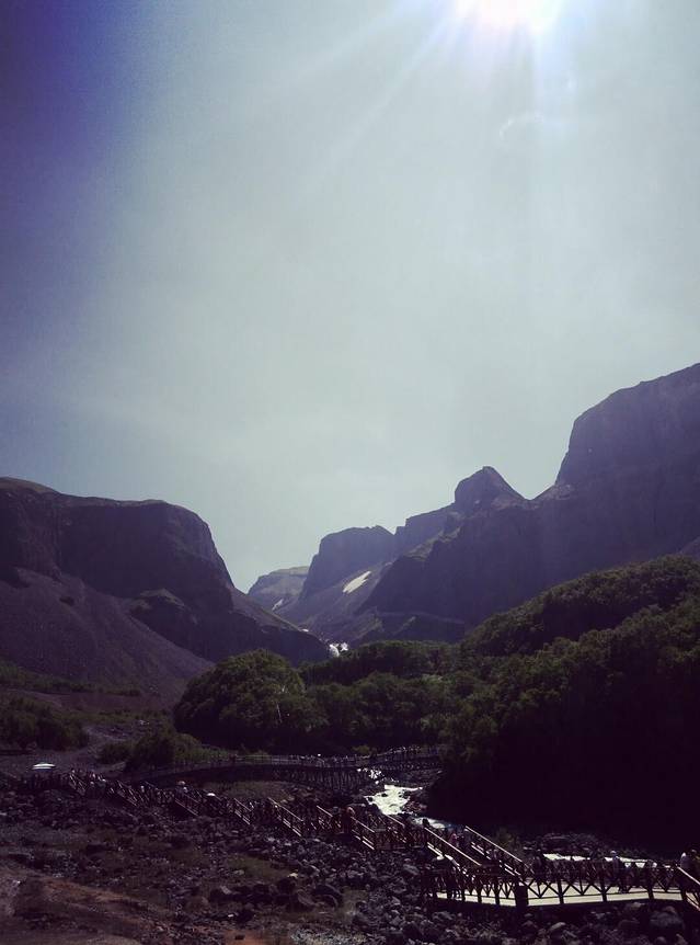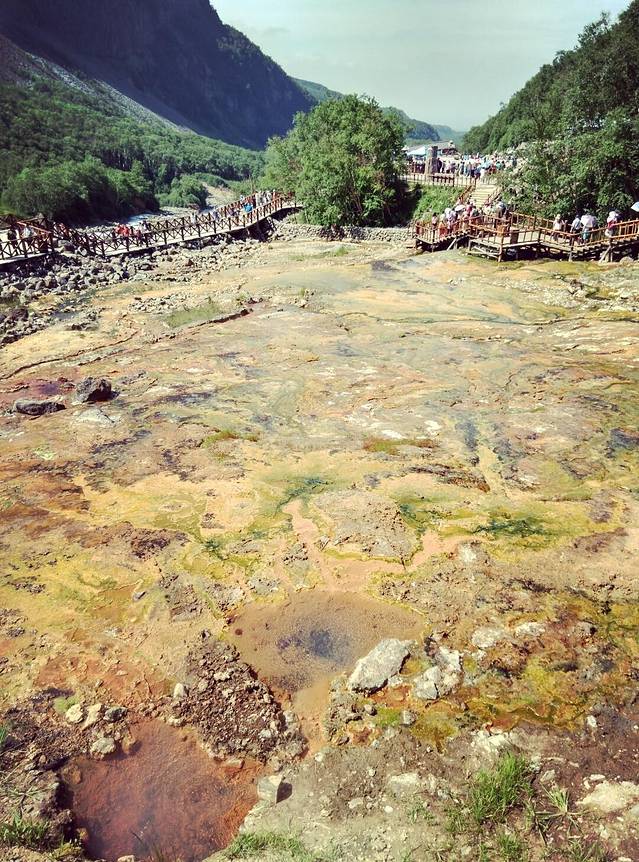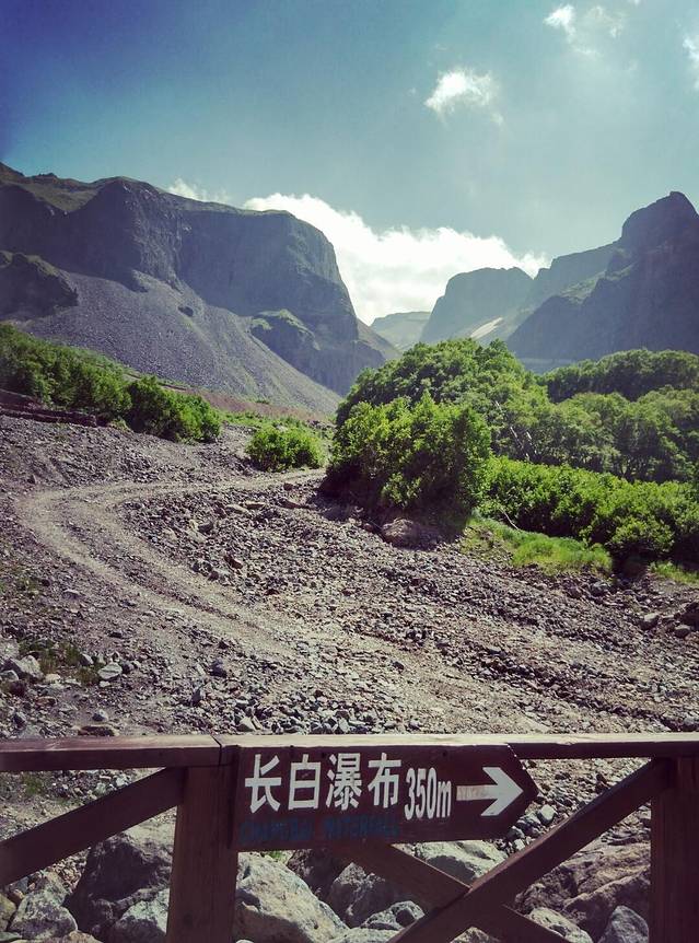 从天池下来我们排了一会队坐车到中转站,然后坐环保车出发去看长白瀑布。这几个是登长白北坡必看的景点。