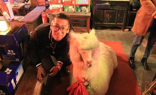 最开始吸引我们的是羊驼,丽江唯一的一直羊驼。