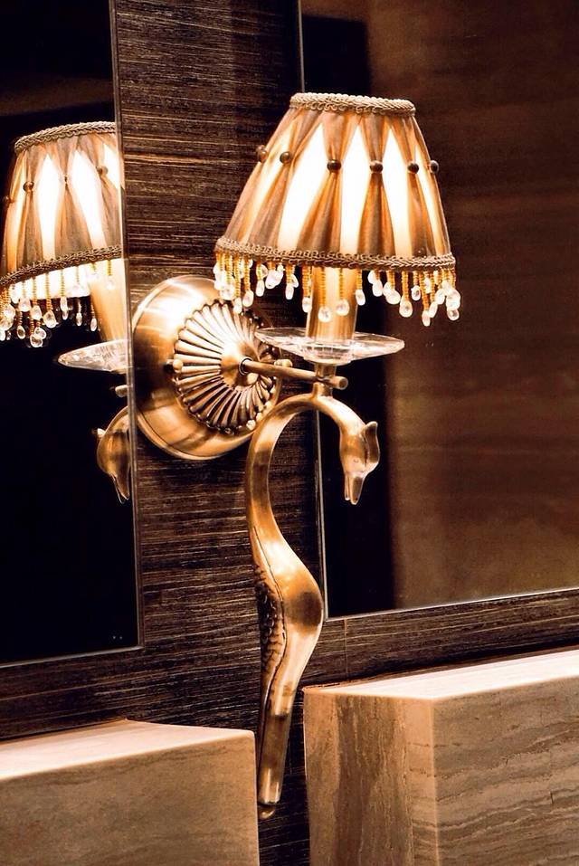 为酒店灯饰之华美点赞。图为女洗手间壁灯。