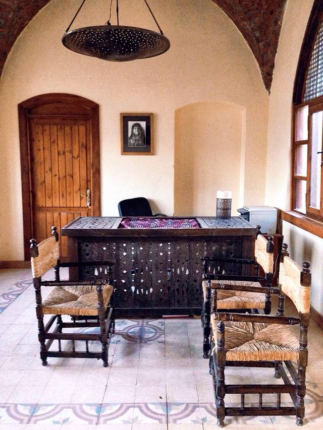 进入这座教堂需要攀登29级台阶,早期的开罗人曾经称它为“楼梯教堂”。由于目前地面比罗马统治时期抬高了6米左右,罗曼塔楼大部分被埋在地下,减少了教堂不少的视觉冲击力。十九世纪的双钟楼立面,位于铁门内一个狭窄的庭院内。登上台阶,通过入口后是又一个小庭院,通往11世纪的外门廊。