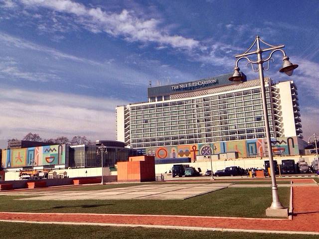 Barcelo Cairo Pyramids Hotel。酒店的建筑本身在灰头土脸的吉萨区显得出类拔萃,格外引人注目。这是一家有四星标准的国际品牌连锁酒店,装饰既富有现代感又不失古埃及文化的神韵。酒店内的意式餐厅性价比蛮高,味道也不错,值得尝试。