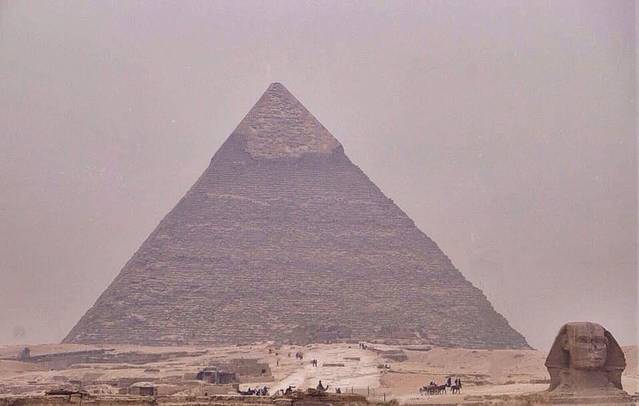 【吉萨金字塔的遗憾】吉萨金字塔群位于开罗近郊的吉萨区。公元前三千纪中叶,古埃及人在此建造了三座大金字塔,是众多金字塔中最成熟最杰出的代表,主要由胡夫、哈夫拉和孟卡拉三座金字塔及狮身人面像组成,周围还有许多小金字塔。
