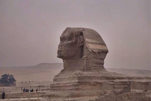 不得不感慨自己与金字塔缘浅,在埃及的每天都是阳光普照温暖明媚,除了去决定金字塔的那天,开罗的天气无比恶劣,寒风卷着黄沙和尘土,像浓雾般笼罩着整座城市,能见度极低。到达吉萨金字塔,周围游客稀少,感觉十分萧条。