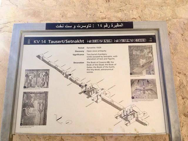 塔沃斯塔王后和塞特纳赫特之墓。塔沃斯塔王后原为古埃及第19王朝法老塞提二世之妻,西普塔的继母。塞提二世去世,她与西普塔共同管理埃及。西普塔死后,她拥有王衔和权力,单独统治约一年去世,王位由塞特纳赫特继承,建立第20王朝,所以这座墓穴的建造时间应该是贯穿了19和20王朝,也是帝王谷里唯一对外开放的女性墓穴。