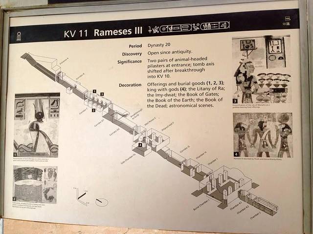 由于100埃镑的门票仅限参观三座墓穴,其中图坦卡蒙和拉美西斯二世的墓都要另外付费,而他们的随葬品大多被转移到了开罗的埃及博物馆,所以不建议另行付费参观。向售票处的工作人员询问,他推荐了三座在设计,装饰和壁画上最具有代表性的墓穴,供大家参考: