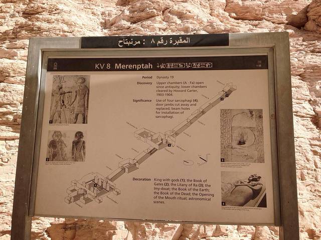 麦伦普塔之墓。拉美西斯二世统治后期,利比亚人逐渐进入尼罗河三角洲西部地区,并与在中东停泊的海上民族联合,企图入侵埃及。麦伦普塔继位后率军与其作战,并取得了胜利,成功地抗御了来自外部势力对埃及的威胁。这一史实在《出埃及记》中得到了反映。