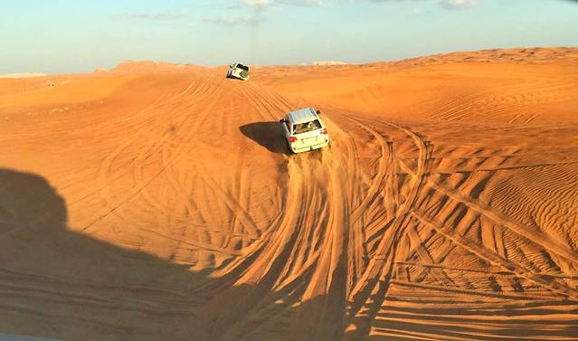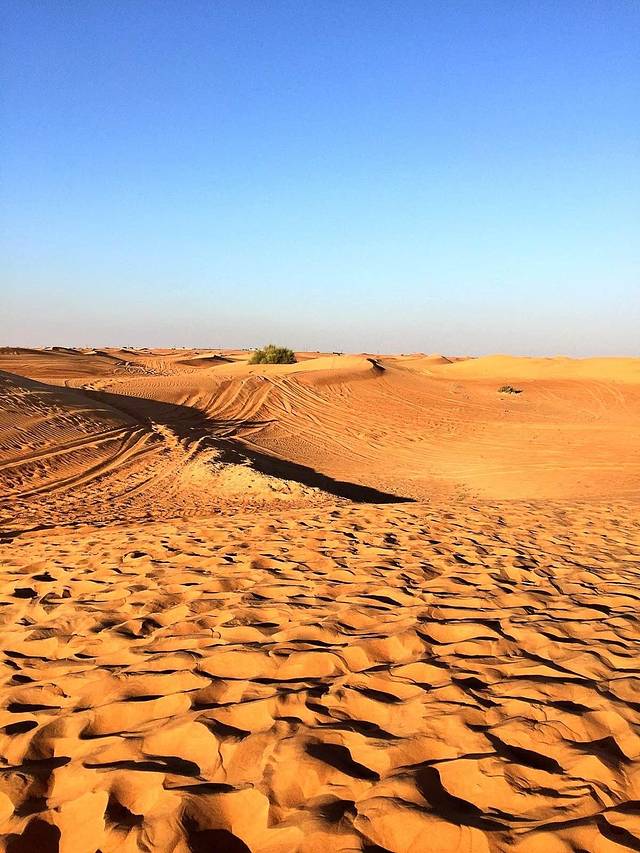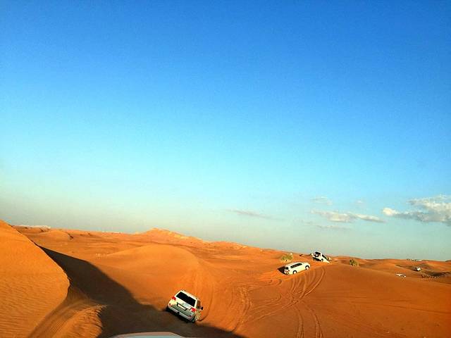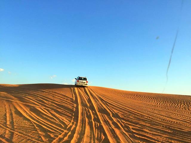 驱车远离繁华喧嚣的迪拜城,黄金沙漠冲沙,可以算最能体验阿拉伯风情的一项
