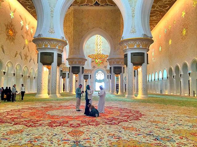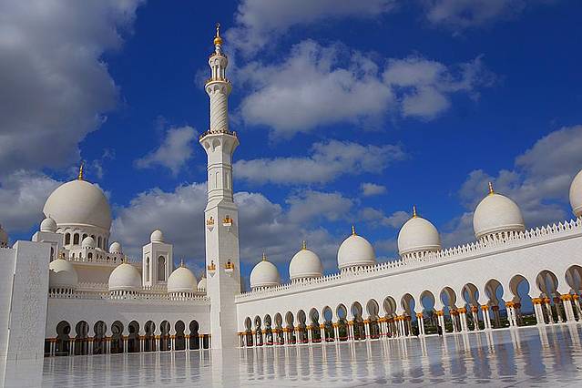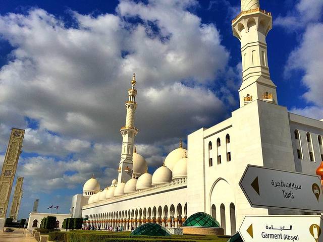 阿布扎比苏丹清真寺是迪拜最大最美最奢华的清真寺也是迪拜唯一一家针对非穆斯林开放的清真寺。