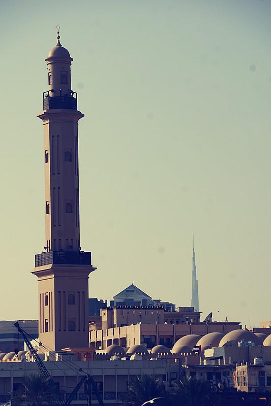 迪拜历史的旧城区Deira,传统的风塔、圆顶的清真寺及黄金市场和香料市场所在地