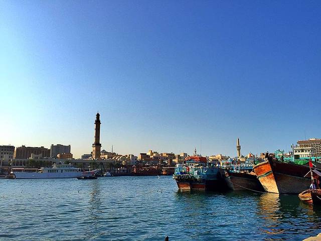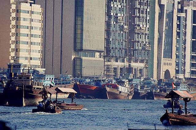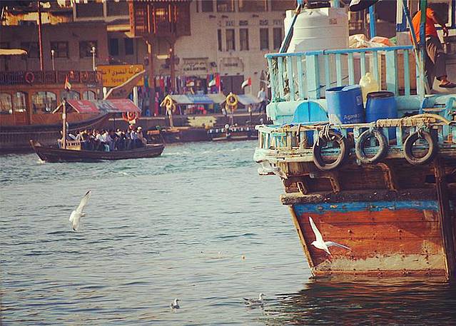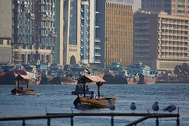 迪拜河是迪拜的母亲河,约10公里长,它将迪拜这个城市一分为二,河的西南边是新兴的Bur Dubai区,河岸边林立着现代高楼大厦,玻璃幕墙在阳光下闪闪发光而另一边是象征着迪拜历史的旧城区Deira,传统的风塔、圆顶的清真寺及各种琳琅满目的集市。