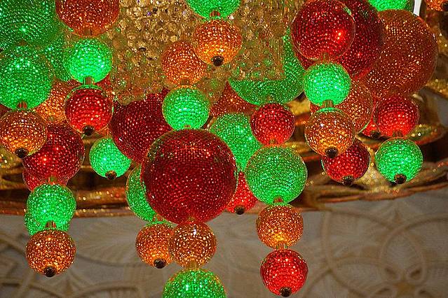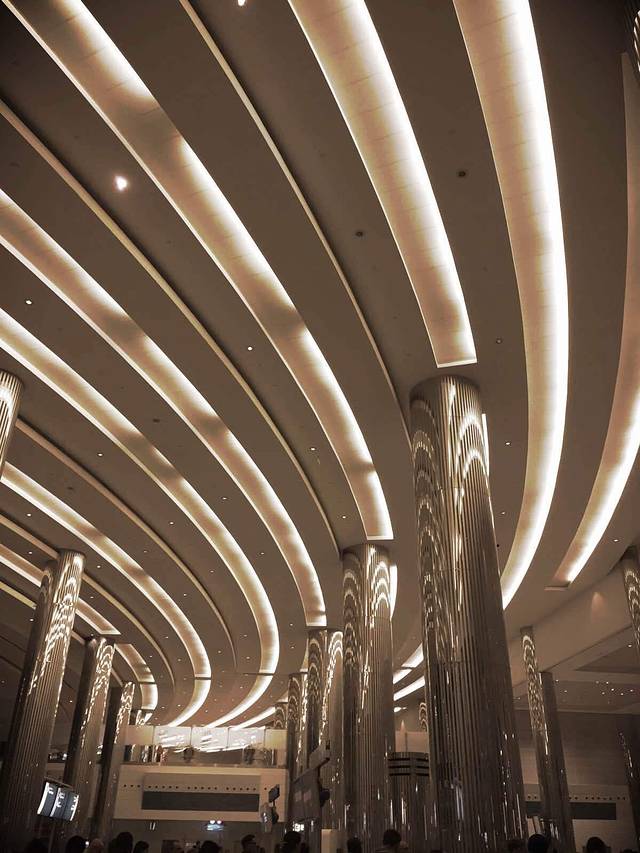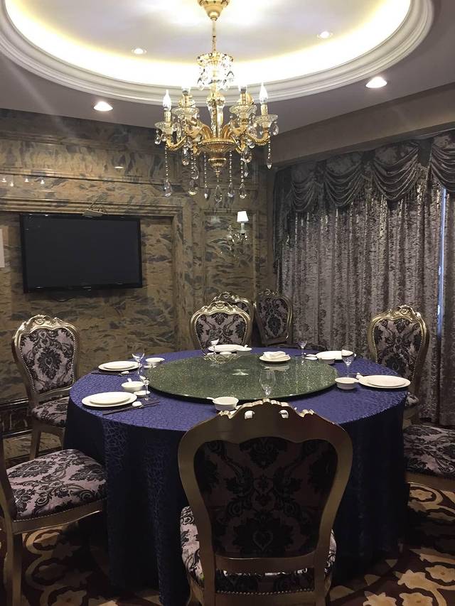 重8吨的重的吊灯上镶嵌德国水晶,管子黄金做的,奢华啊