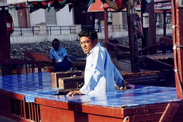 早晨的迪拜河,零星的船只在河边上行驶,来了,且坐一次吧