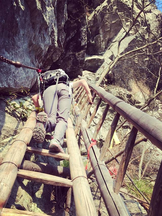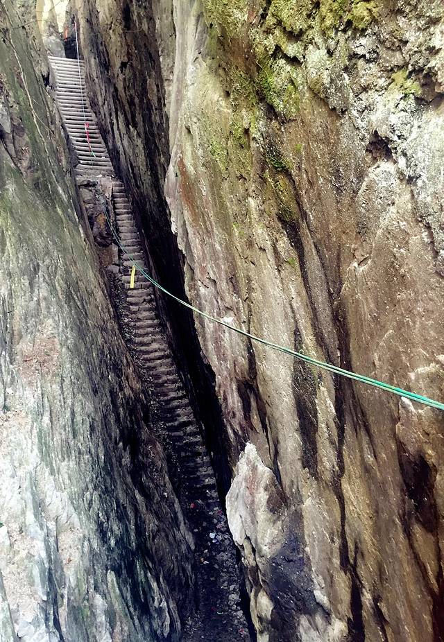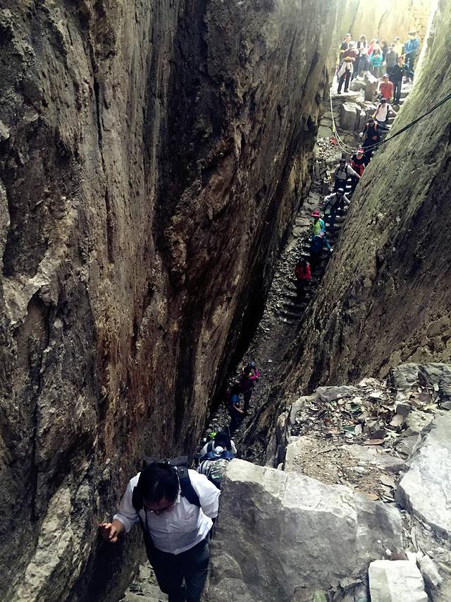 这里好像叫通天洞,两边台阶都快有70度了吧,必须得从一边下去,再从另一边爬到对面,身旁就是笔直高耸的山壁,看上去有点意思,不过走起来还好,只要小心脚下都没什么问题。