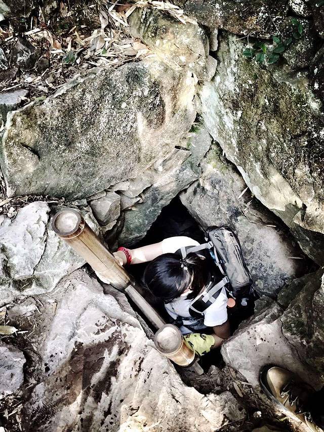 摇摇坠坠的木梯子,攀爬时必须单人通过,爬上去穿出狭小的洞口,就快到飞鹰道了。