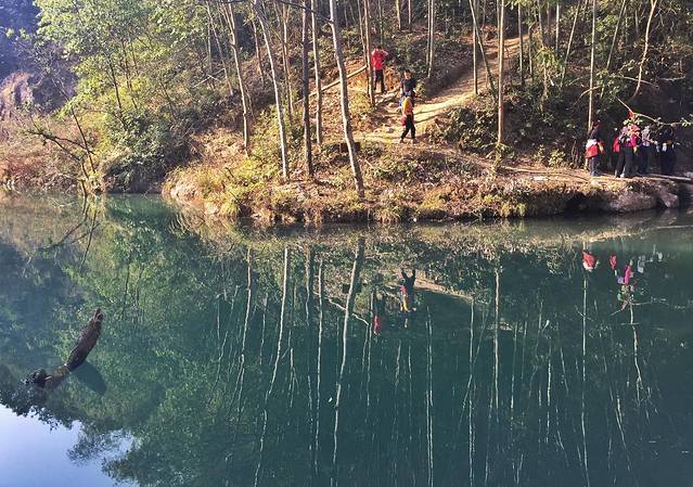 路过一汪清池,在登山间带来不少清凉快意,墨绿色的池水里清晰地倒映着山林的景致,不知深几许。