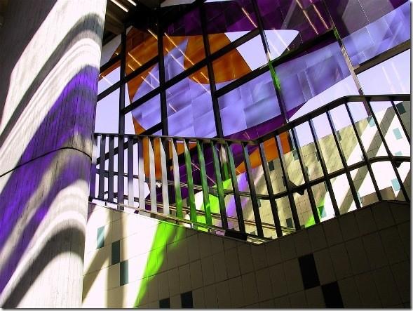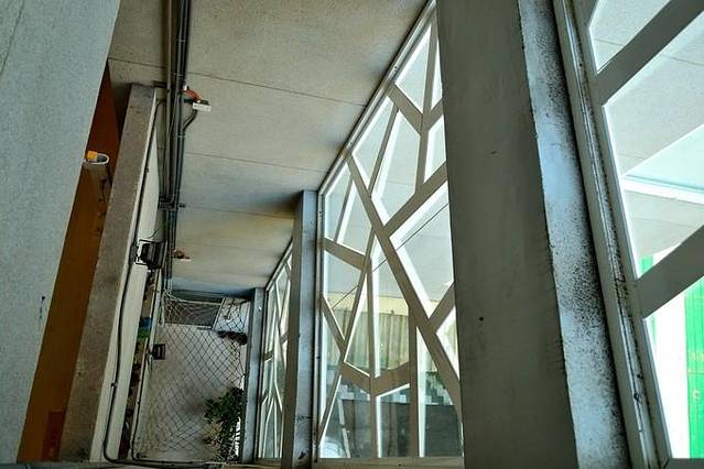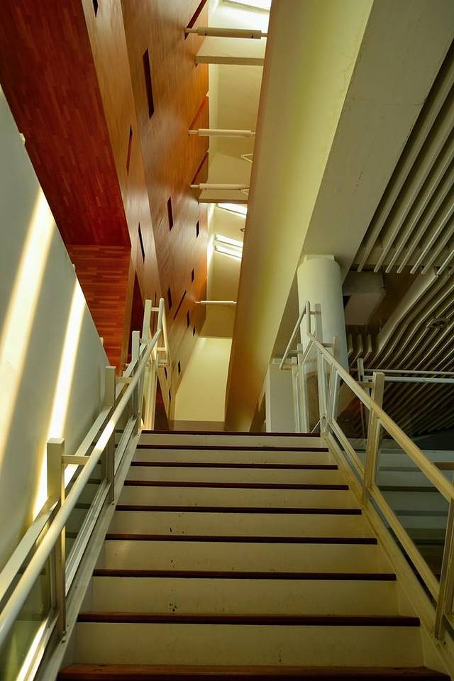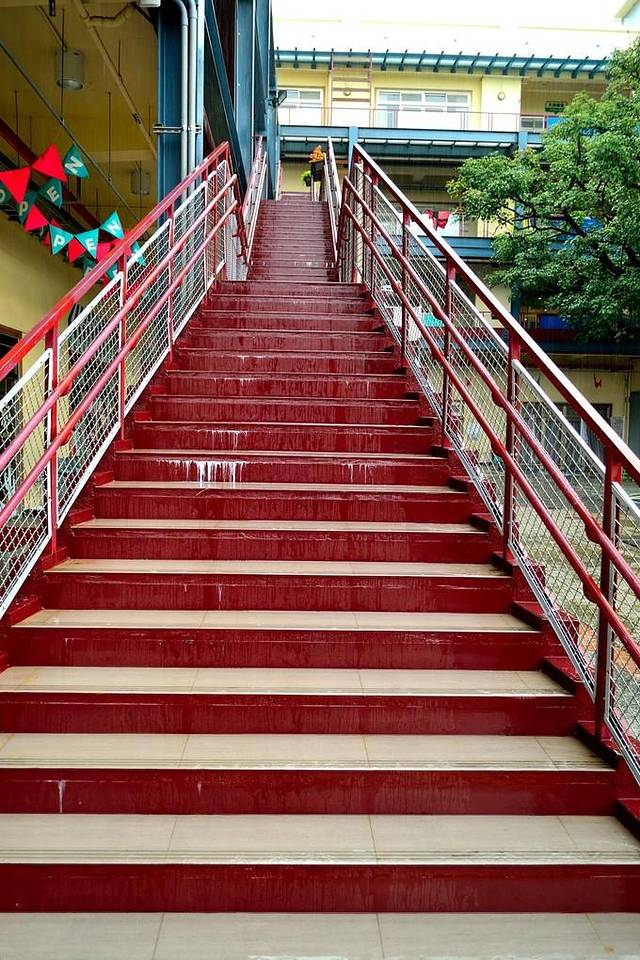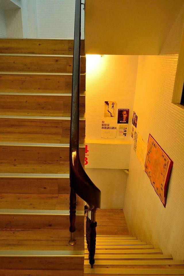 还在下着小雨,就没上楼去,不过楼梯蛮好看的,搭配整体建筑的格局,大红色显得特别有味道。