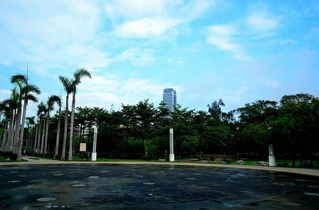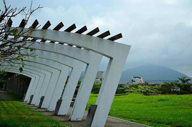 嘉义市文化广场就在铁路车库园区边上,从园区走出来就直接来到文化广场了。