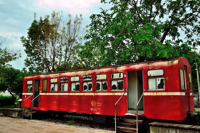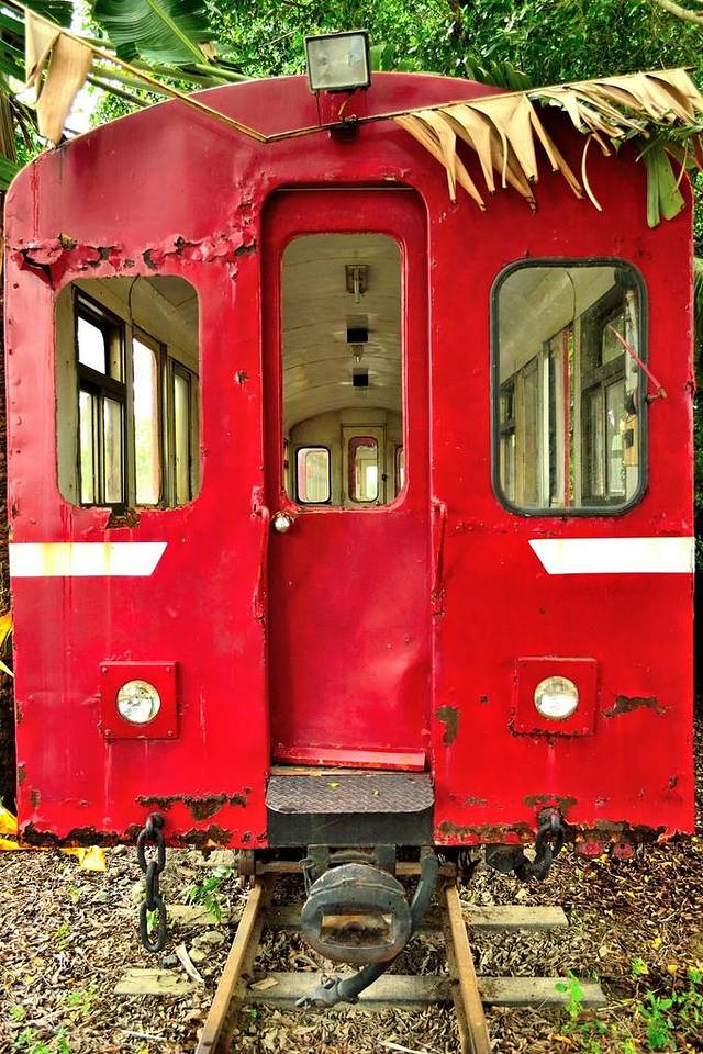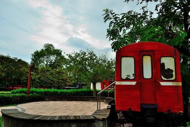 园区里有很多很多标着“嘉义-阿里山”的列车,连厕所竟然都是建在一节车厢里面的,真的是超级利用,合理配置哦。