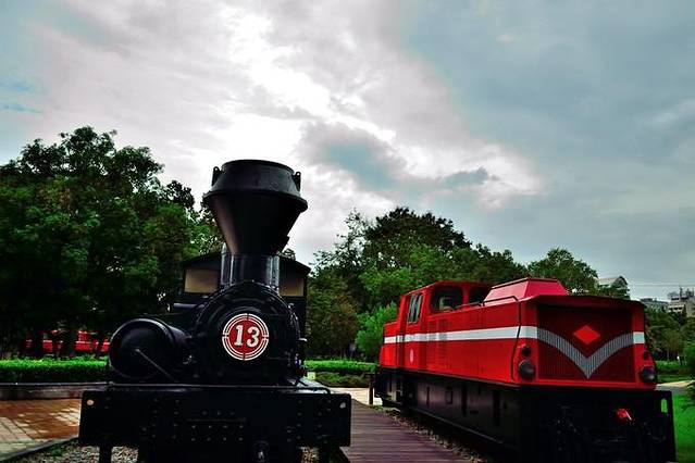 从森林之歌走大概3分钟,就走到阿里山森林铁路车库园区,园区位于嘉义林森西路北侧,介于兴中小路、文化路之间,是阿里山小火车的大本营,这里有机动车库、修理工厂、停车场、车厢清洗场之类的设备。