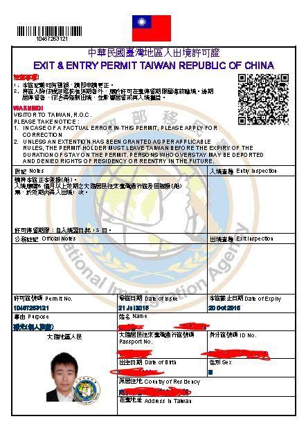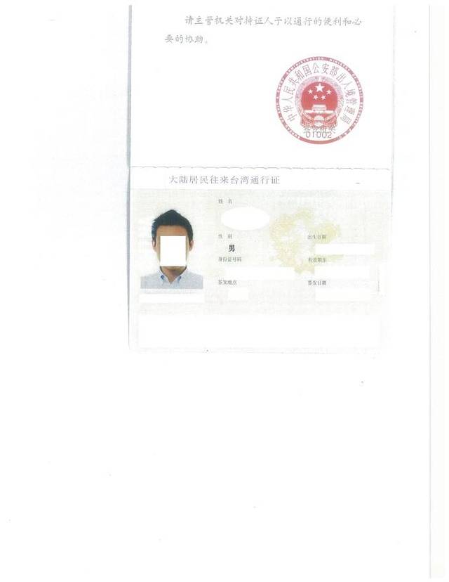 大通证 - 《大陆居民往来台湾通行证》