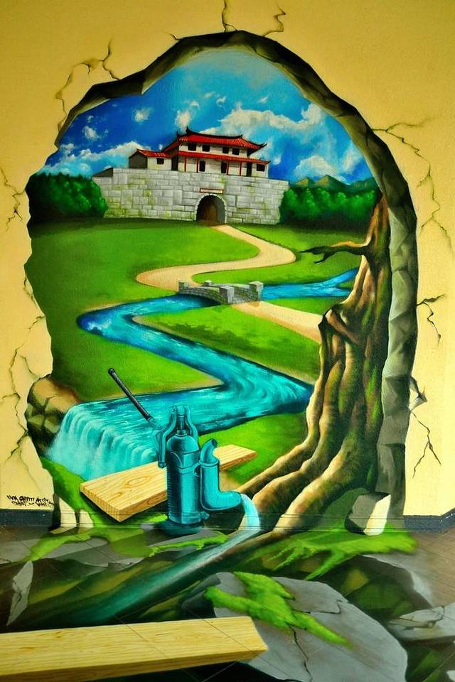 墙角的3D壁画,非常逼真,看样子,应该就是大南门公园曾经的光景。