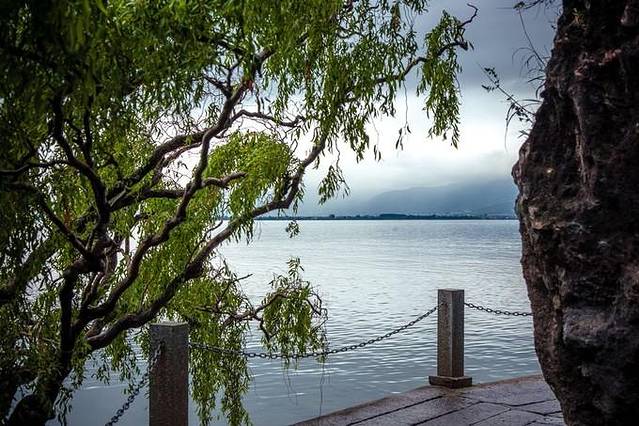 天气实在是不给力,时不时下起小雨,还凉飕飕的……远处的西山,时不时被笼罩在烟雨雾之中,连近距离的水面都若隐若现……
