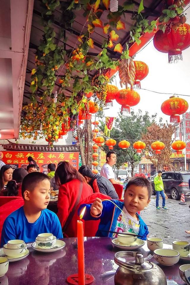 游完约2个多小时,时值午后了,孩子们也饿了,我们从影视城出来,驱车到了大理古城南门附近找饭店吃饭……停车还是有困难的,这家饭店正好有停车位,我们就顺势进来了。看客人较多、饭店也喜气洋洋,说不定不错呢……