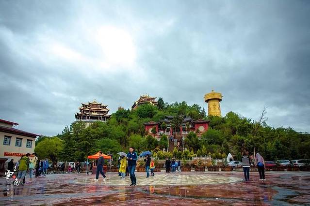 香格里拉月光广场位于云南省迪庆藏族自治州香格里拉县龟山公园脚下,其貌不扬的一块小广场,白天路过时全是烧烤摊,烟雾缭绕,这里有世界最大的转经轮,可做虔诚的祈祷,到了夜间瞬时摇身变成当地藏族人民欢乐休闲的胜地,藏民和各族游客一道绕着圈,跳着热情的藏族舞蹈,其乐融融。广场东面的小山就是著名的龟山公园,是唐代神川都督府,即历史上著名的“铁桥东城”所在地。传说当时建城时有活佛在古城对面山头遥望,发现大龟山犹如一尊佛坐在莲花上一般,故古城建设布局形似八瓣莲花,时过境迁,形如莲花的神川都督府已不知所踪,取而代之的是错落有致的藏传佛教寺庙。