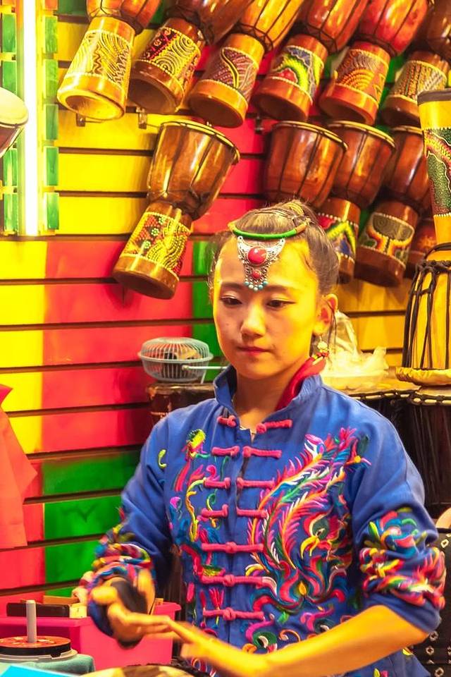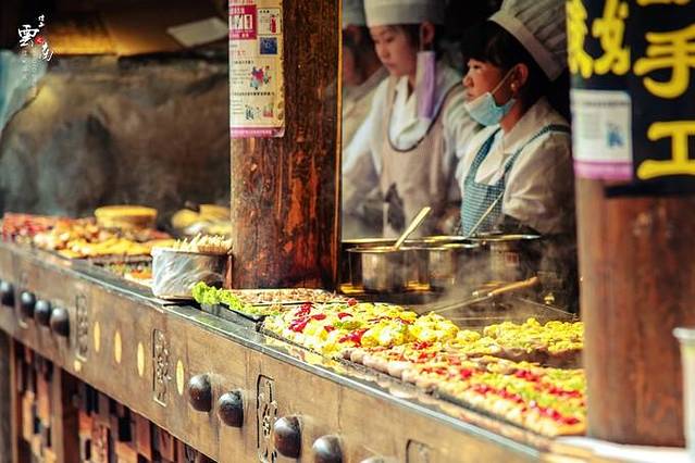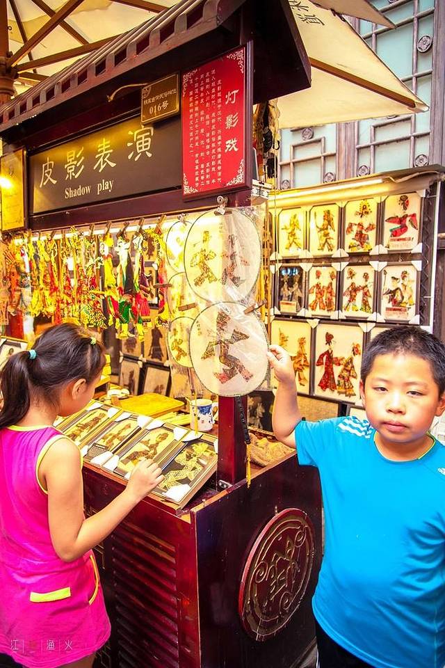 商店里卖的些是筷子、茶叶、灯笼、蚕丝被和土特产。餐厅里的美食有张飞牛肉、三大炮、肥肠粉,一箸一杯都是冲着味道去的,不花俏,没有噱头,讲究的是实惠。还有手艺人的玩艺儿,捏个泥人,转个糖画儿,买张剪纸,都是包含童趣的东西,怀旧也是怀念童年淳朴的快乐。一条街色彩缤纷的花灯和幌子,是大俗,图的是个热闹。而街上最吸抓眼球的,还是那些让人热烈思慕的成都粉子。她们在酒吧里嗑瓜子和打牌,喝着外国酒,说的还是绵软成都话。