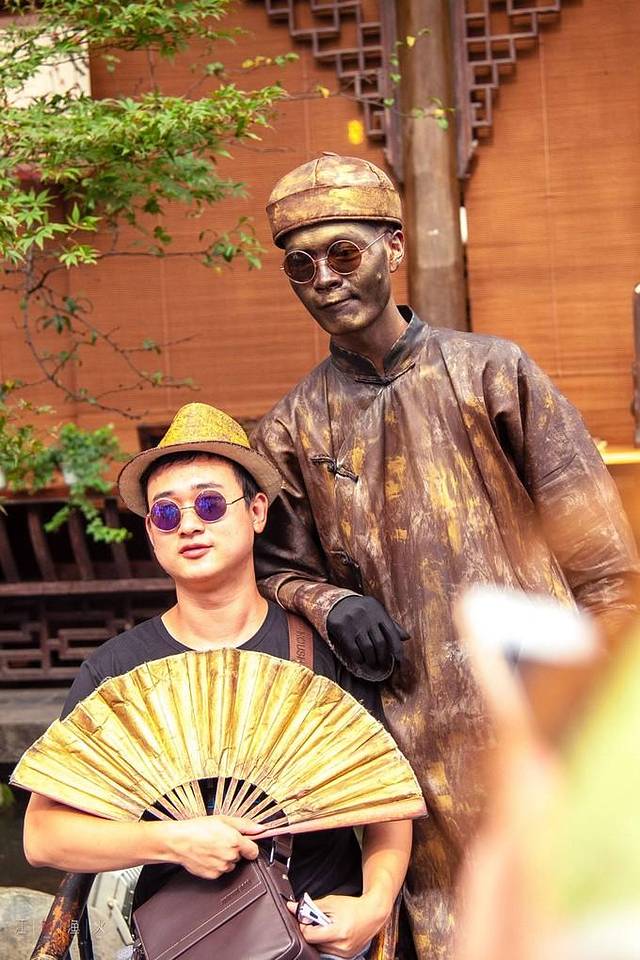 拍照收费,10元/张。拍他行,要是和他合影,我觉得太没必要了吧,呵呵。